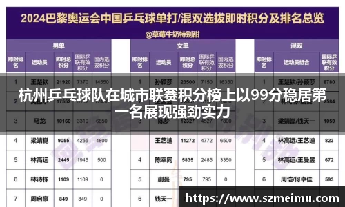 杭州乒乓球队在城市联赛积分榜上以99分稳居第一名展现强劲实力